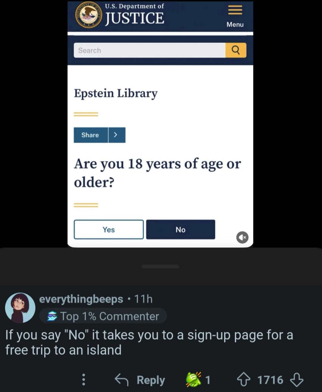 arrow-up1293arrow-down1imageGuess who wasn't in the Epstein files...lemmy.worldKokesh@lemmy.worldEnglish · 6 days agomessage-square32linkfedilink