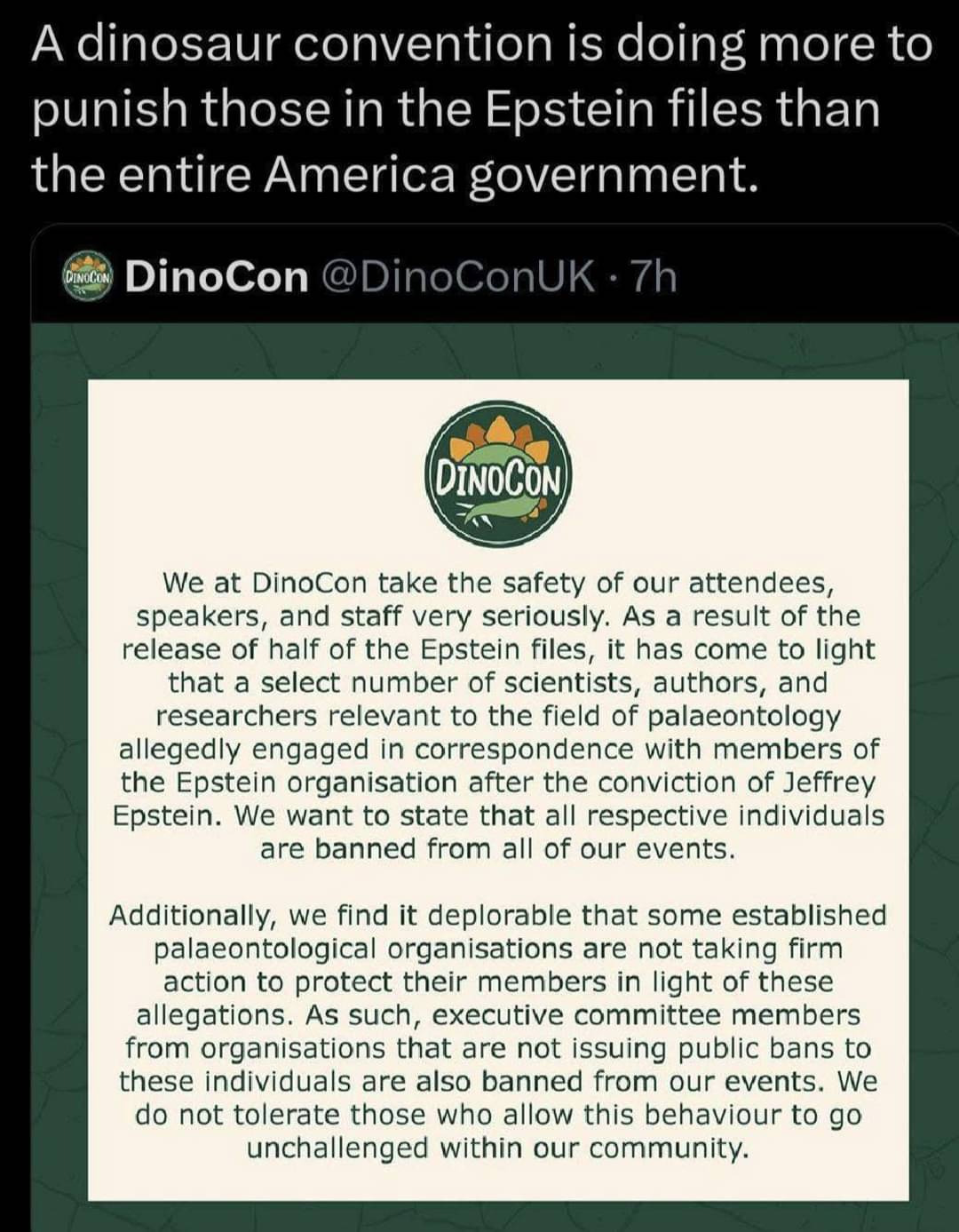 arrow-up11.86Karrow-down1imageWhen DinoCon is doing more than the US Govfiles.catbox.moefossilesque@mander.xyzM to Science Memes@mander.xyzEnglish · 3 days agomessage-square199linkfedilinkfile-text