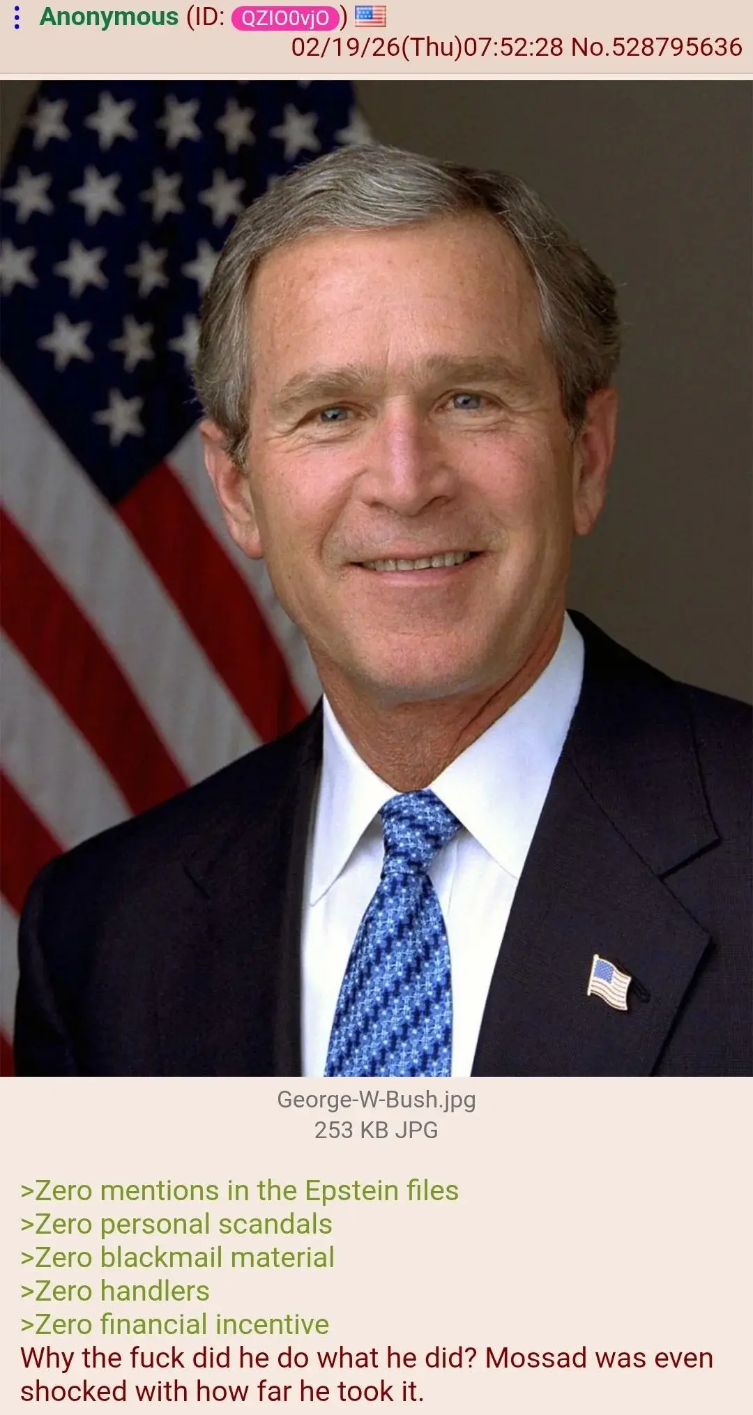 He was just a puppet for that part. If 9/11 never happened he would have been a mediocre 1 term president.