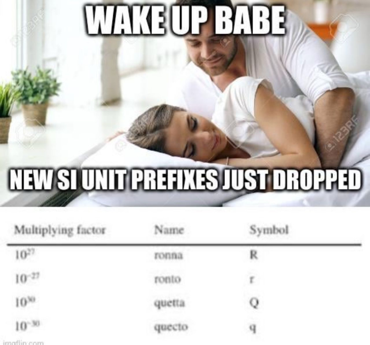 minus-squarea_little_red_rat [he/him, comrade/them]@hexbear.netlinkfedilinkEnglisharrow-up7·edit-21 year agoMy favorite prefix will always be exa. Mostly because of a sci-fi book where one character called himself Exa and there were a few subtle puns with that name (like getting obliterated with a 10^18 W laser)