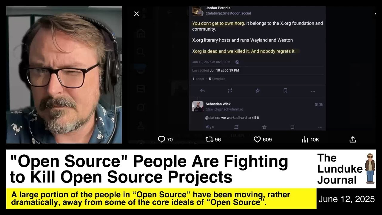 My take; since the comments have buried it under the angry defense of Wayland and Freedesktop by trying to dismiss the video creator (who isn’t me).
