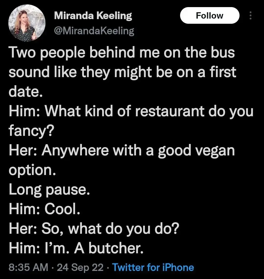 A person who only goes to church once a week and otherwise lives without a thought to their religion is like a vegan that eats meat voluntarily everyday except Sunday.