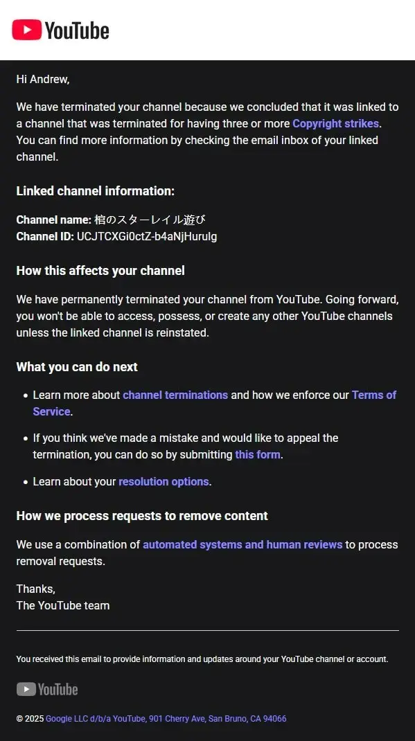 This time it was a copyright violation of some random Japanese channel, with no relation to his channel. It is very possible this error was made by the new AI YouTube copyright detection bots.