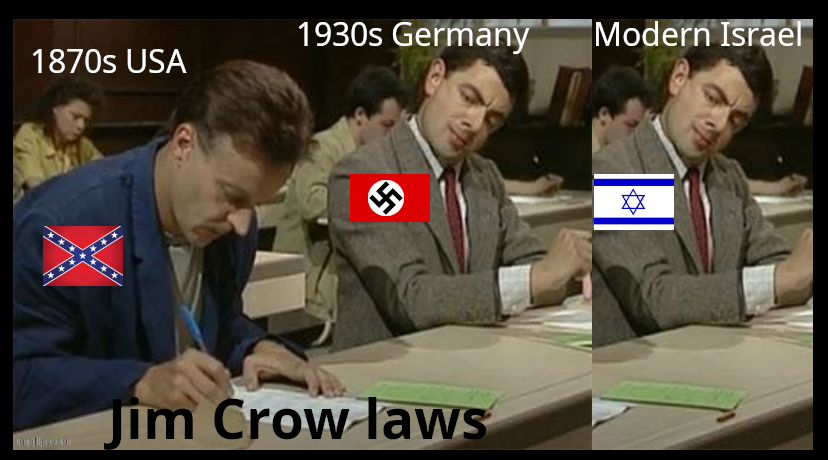 fort_burp@feddit.nl to Memes@lemmy.ml · 7 days agoJim Crow Lawslemmy.mlimagemessage-square4linkfedilinkarrow-up1244arrow-down15file-text