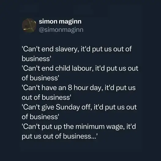 I totally get that just not from the people who don’t actually profit. If you think capitalism is good but don’t actually get a slice of the cake you really shouldn’t oppose regulation.