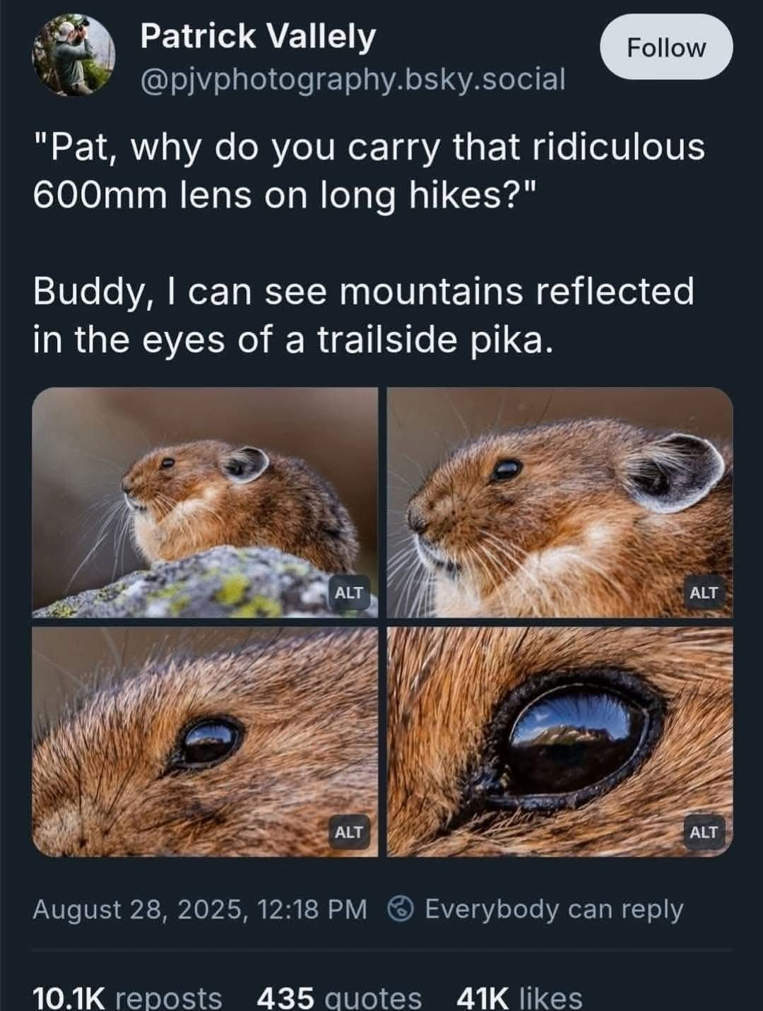 I’ve seen things you people wouldn’t believe. Mountains in the eye of a trailside pika, …
