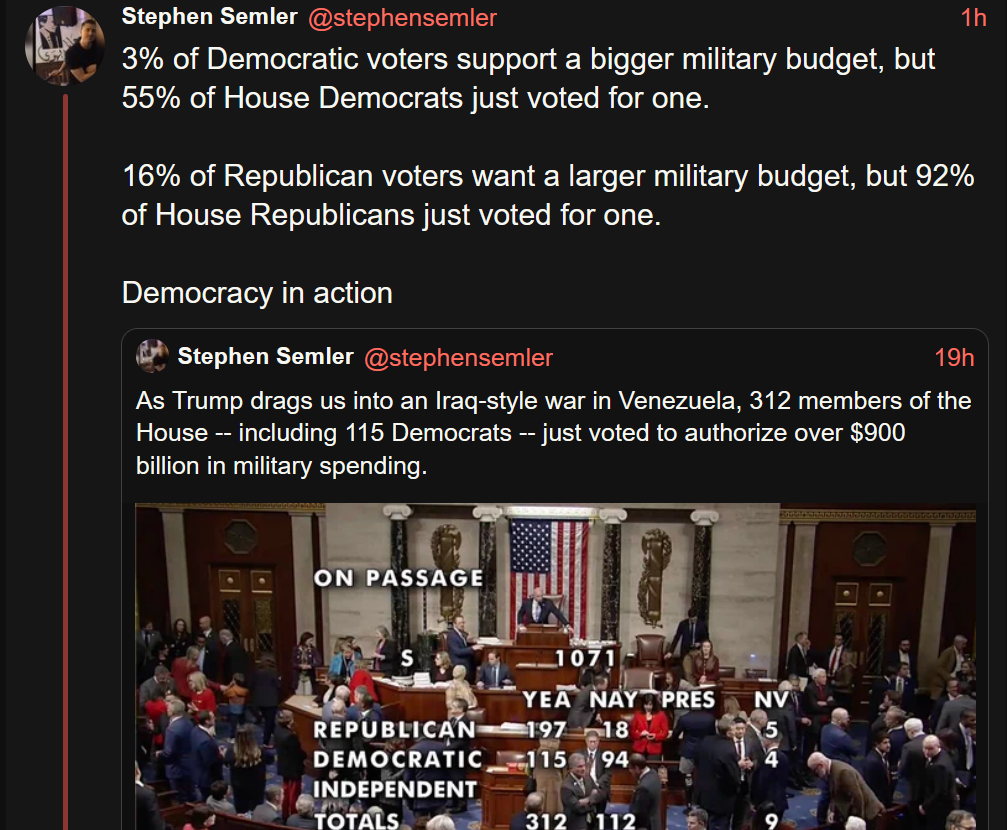 For the amount of times I’ve heard the words “power of the purse” in regards to congress I have yet to see them exercise that power to restrain the empire.