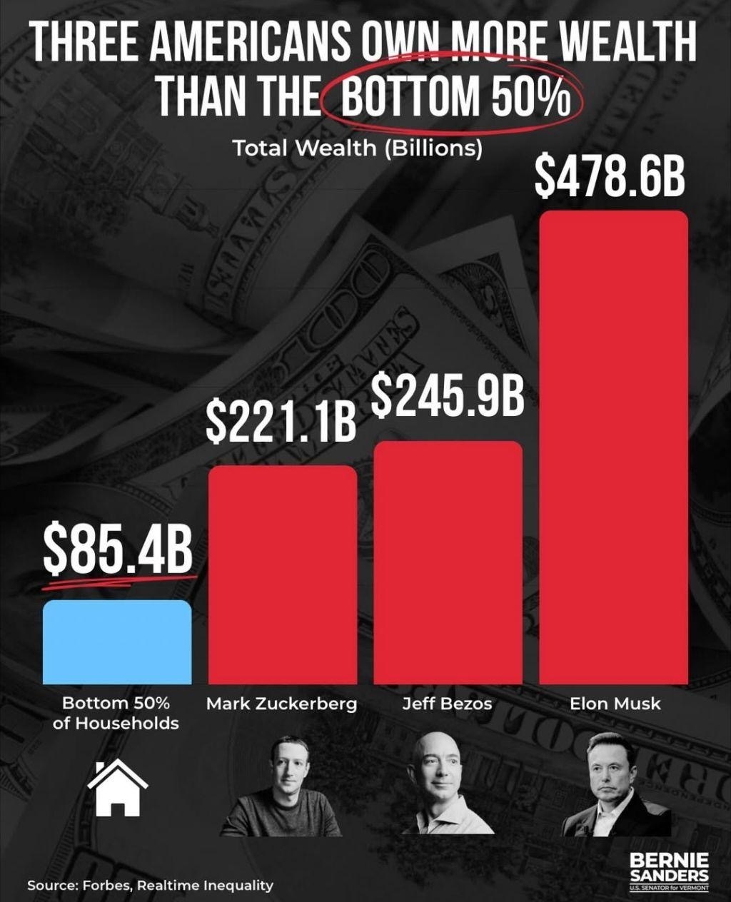Now, I might be misreading this data, but from what it looks like either one of these billionaires by themselves have more wealth than the bottom 50% of Americans, right?