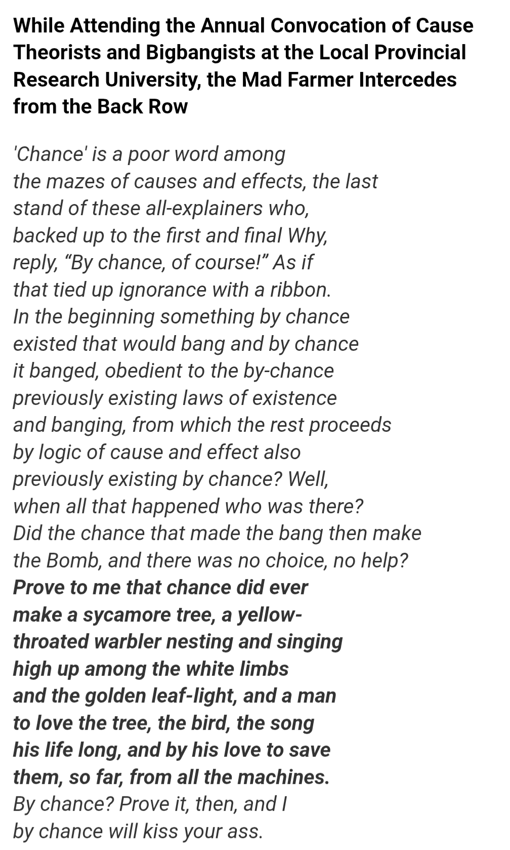 Science-denying bs aside, I hate how this guy just puts line breaks wherever the fuck he wants with seemingly no consideration of flow or pacing. But then I’m not a poet, maybe there’s some deeper patterns or something going on that I can’t be bothered to look for.