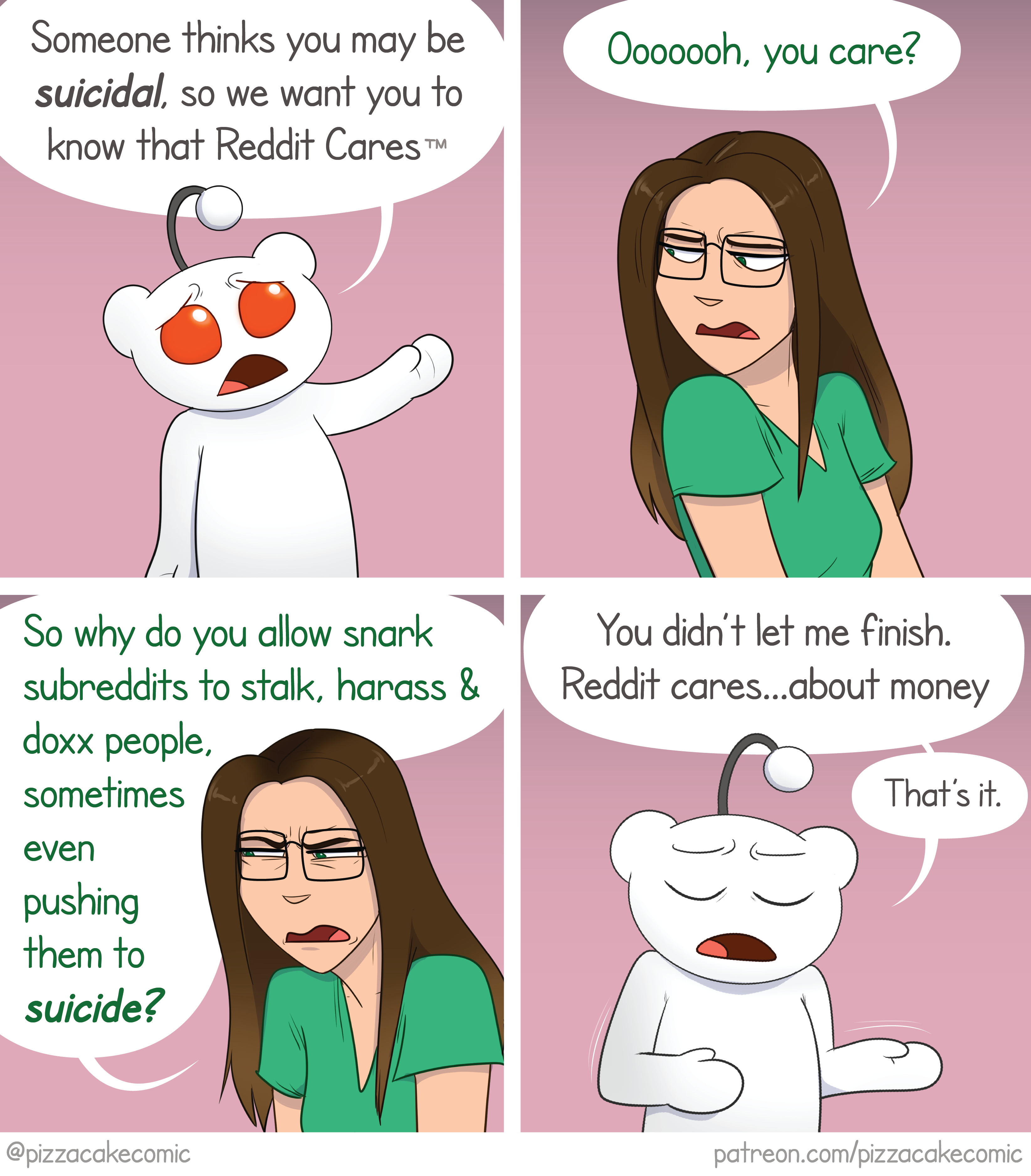 Does that mean the only proof of the bots and unfair moderation is people saying stuff? No screenshots of messages from the chick asking mods to take down mean comments, or IP addresses for different accounts boosting her posts?
