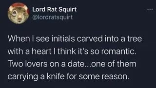 Follow the thread, this is about whipping a knife out on a date by a tree, presumably with no witnesses.