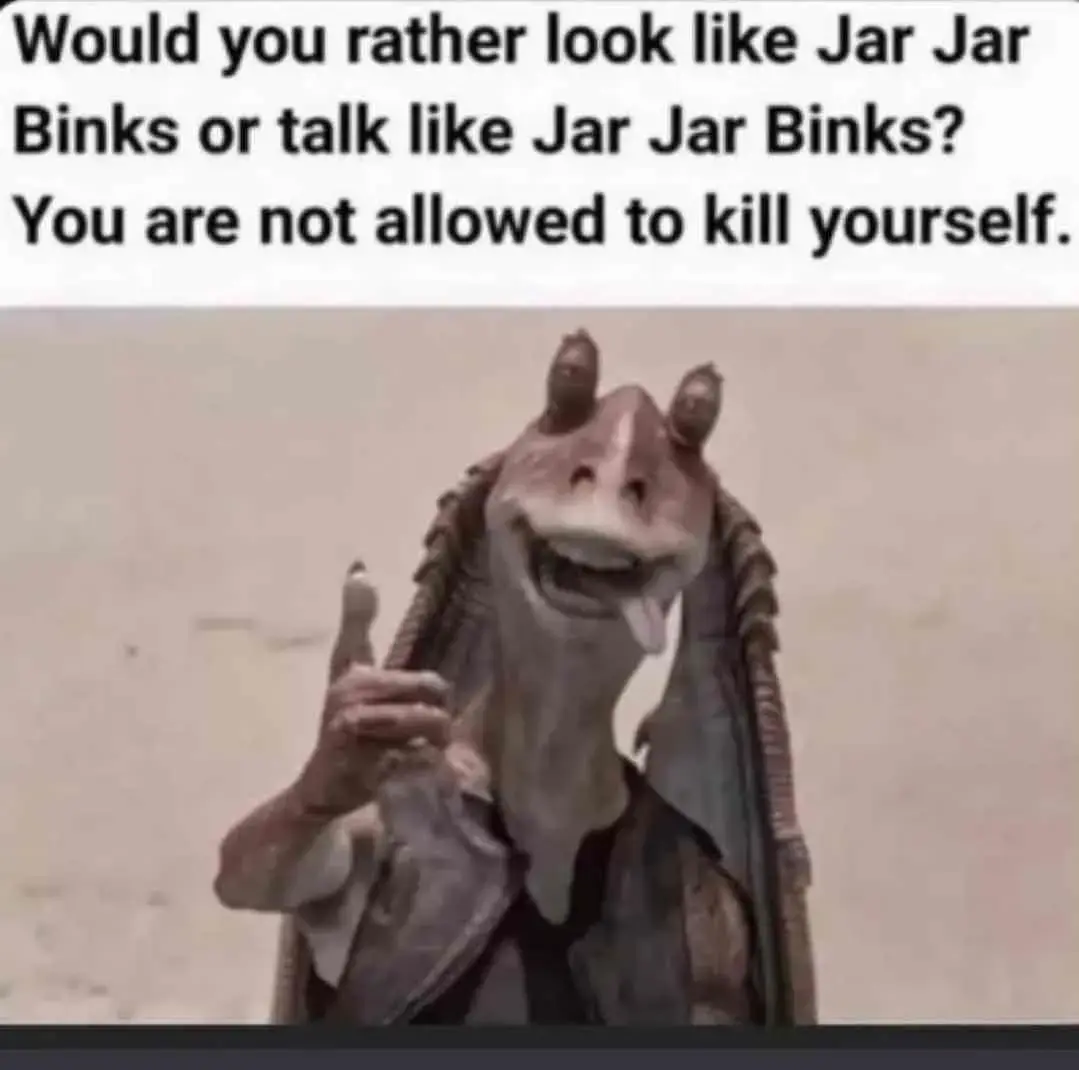 minus-squareBeeegScaaawyCripple@lemmy.worldlinkfedilinkarrow-up4·21 days agothe orifice of champions! look like jar jar it is