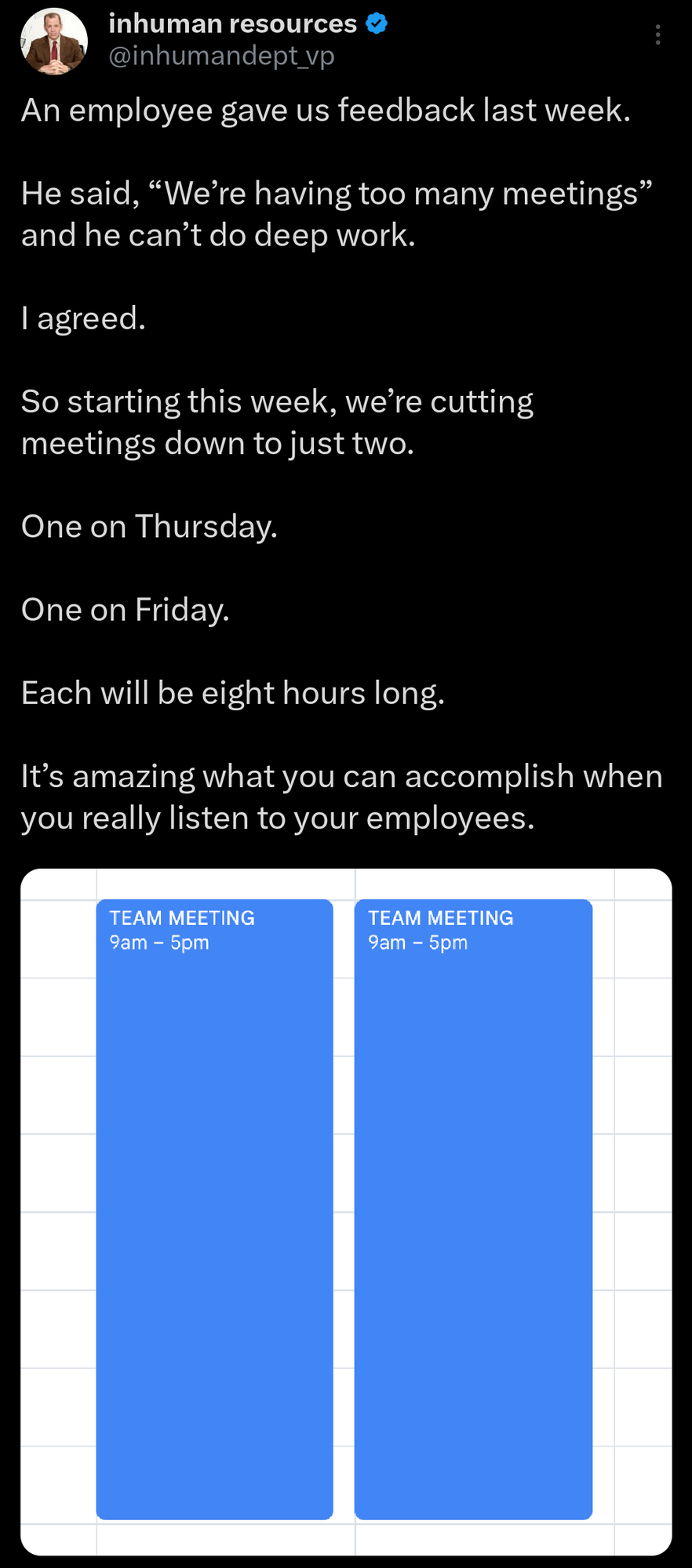 To be fair, I never lead meetings anymore and struggling not to fall asleep is still a good portion of my job.