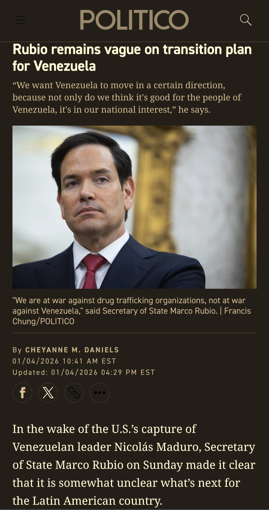 But Rubio on Sunday argued that the U.S. isn’t controlling Venezuela — just Venezuelan policy.