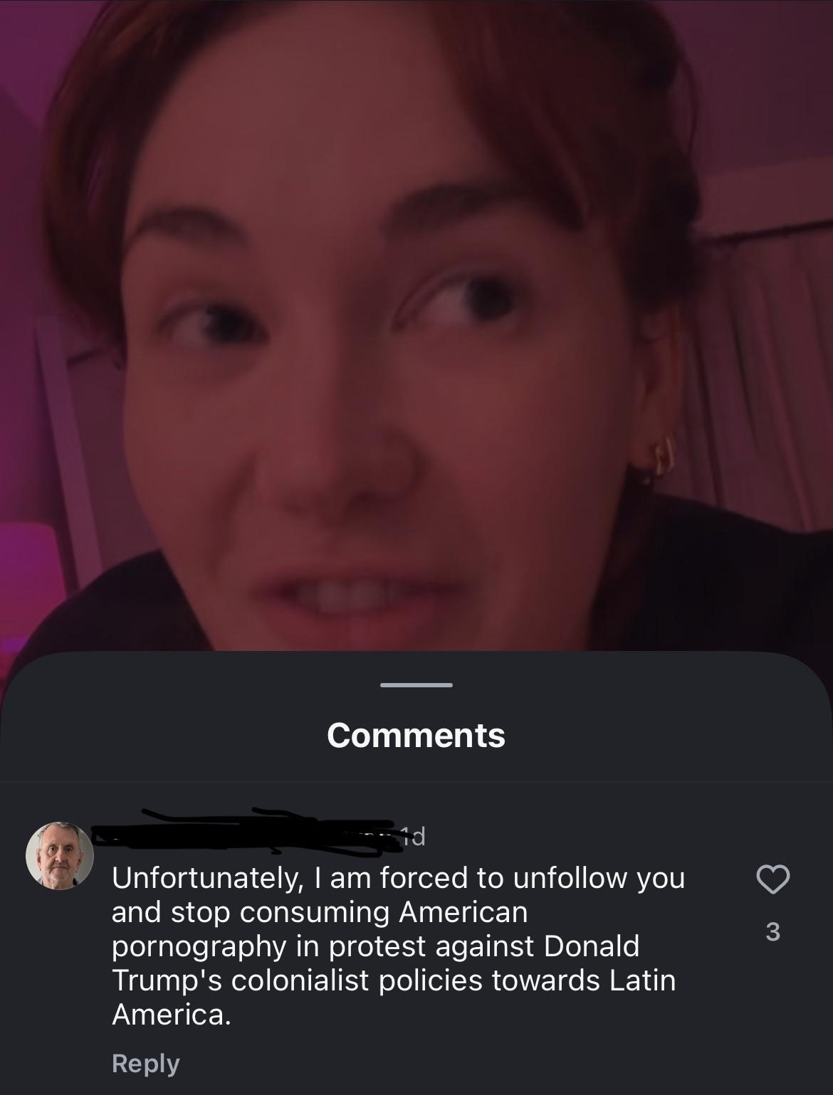 First, using your own photo on your profile. Second, using that to comment on a porn site. Third, giving up your favorite wank for a political statement. This man is fearless.