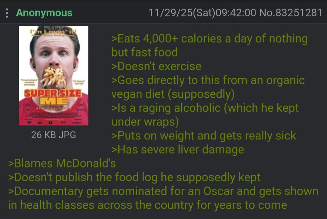 arrow-up1474arrow-down1imageAnon watches Super Size Mesh.itjust.works🍹Early to RISA 🧉@sh.itjust.worksM to Greentext@sh.itjust.works · 24 天前message-square81linkfedilink