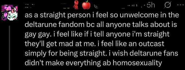 Deltarune is significantly more of a gay game than Celeste is a trans game but I’d still say the same of someone doing this in Celeste spaces.