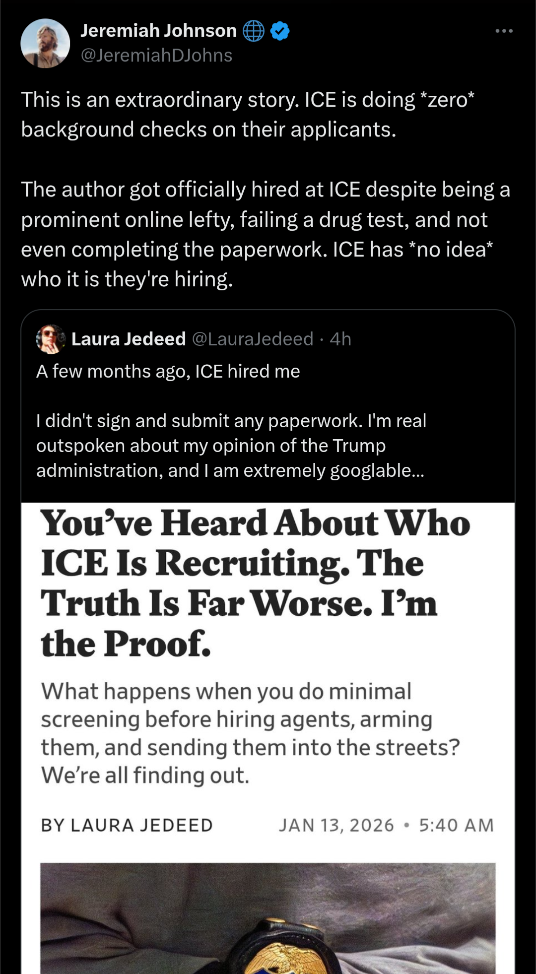 Source: https://xcancel.com/JeremiahDJohns/status/2011122305439596723 The slate link: https://slate.com/news-and-politics/2026/01/ice-recruitment-minneapolis-shooting.html