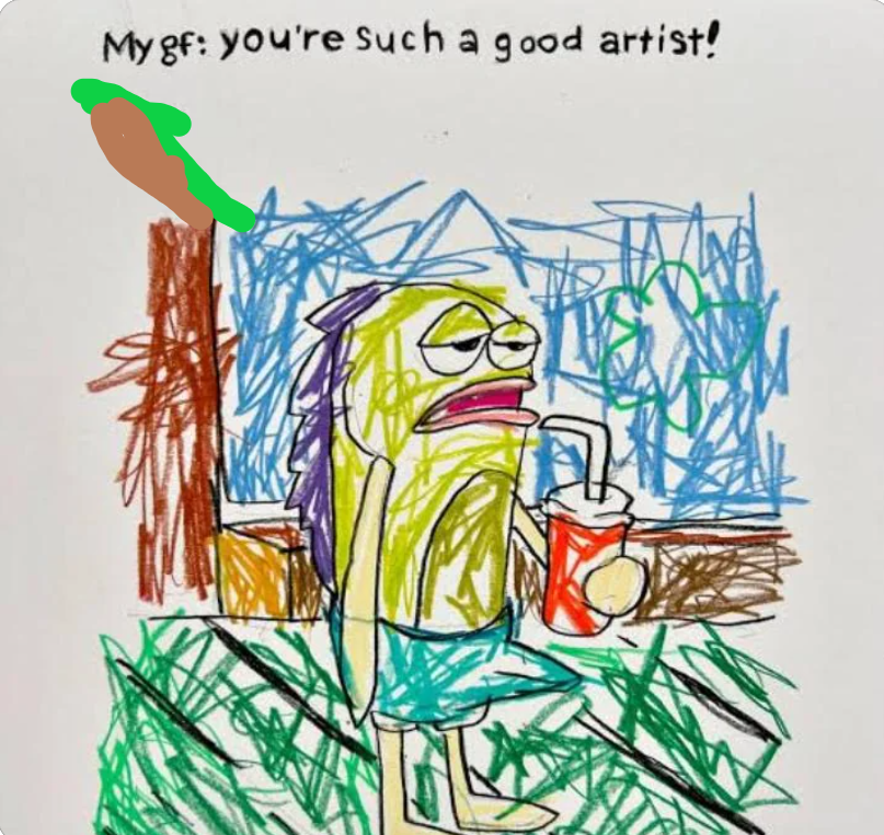 Finally hitting the true intention of this art, reflection on the ego that so perversely sees art and then makes it about themselves. Illustrates by the sexual desire clearly expressed by this sad entity.