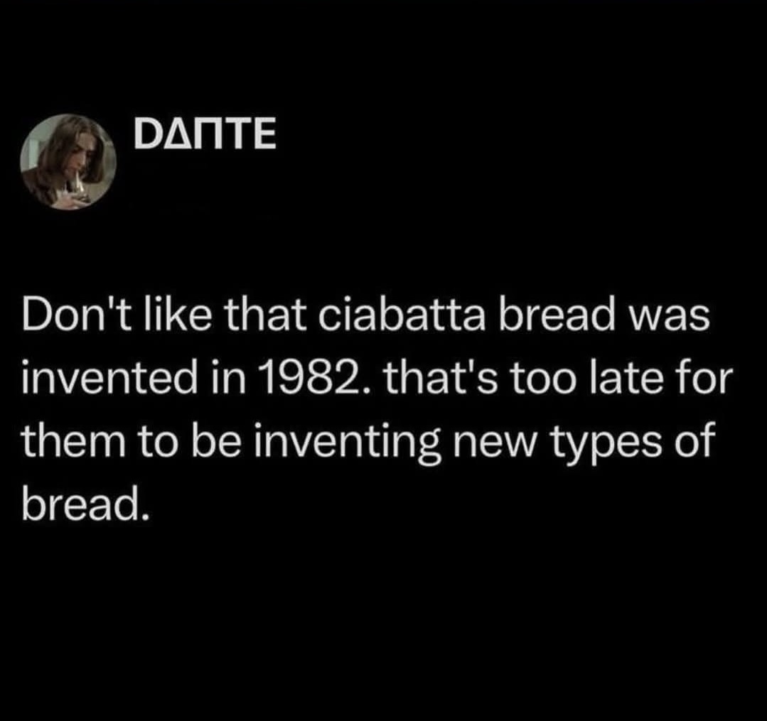 no shit? Ciabatta sounds like a culturally significant thing that’s been around for a long time, crunchwrap sounds like a consumer food product that was invented in modern times