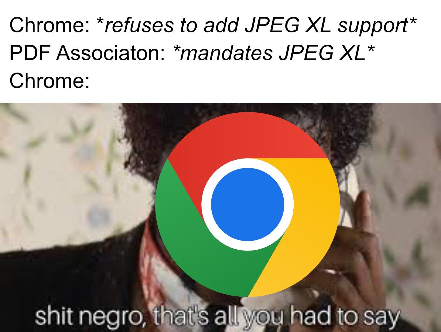 arrow-up1444arrow-down1imageGoogle Chrome must be coerced into adopting standardslemmy.worldTheTwelveYearOld@lemmy.world to memes@lemmy.worldEnglish · 5 days agomessage-square52linkfedilinkcross-posted to: memes@sopuli.xyz