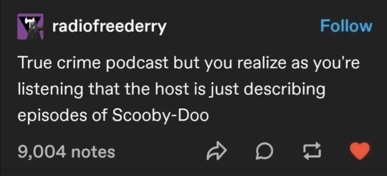 Anyway, I drive these fucktards around in my van and we solve mysteries and shit.