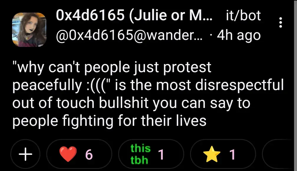 I will say though, it’s easy to get your point confused with the people trying to start chaos in America by saying peaceful protests aren’t enough, that you have to commit suicide by nazi or you don’t love your country.