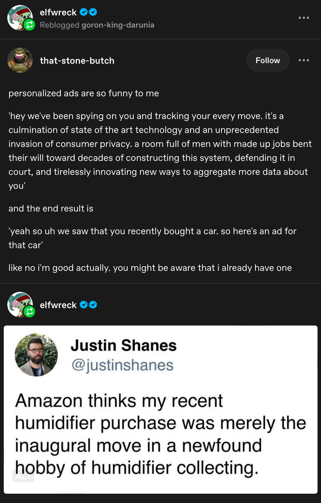 Optional@lemmy.world to tumblr@lemmy.world · 11 days agoWanna buy a(nother) humidifier?lemmy.worldimagemessage-square146linkfedilinkarrow-up11.18Karrow-down111