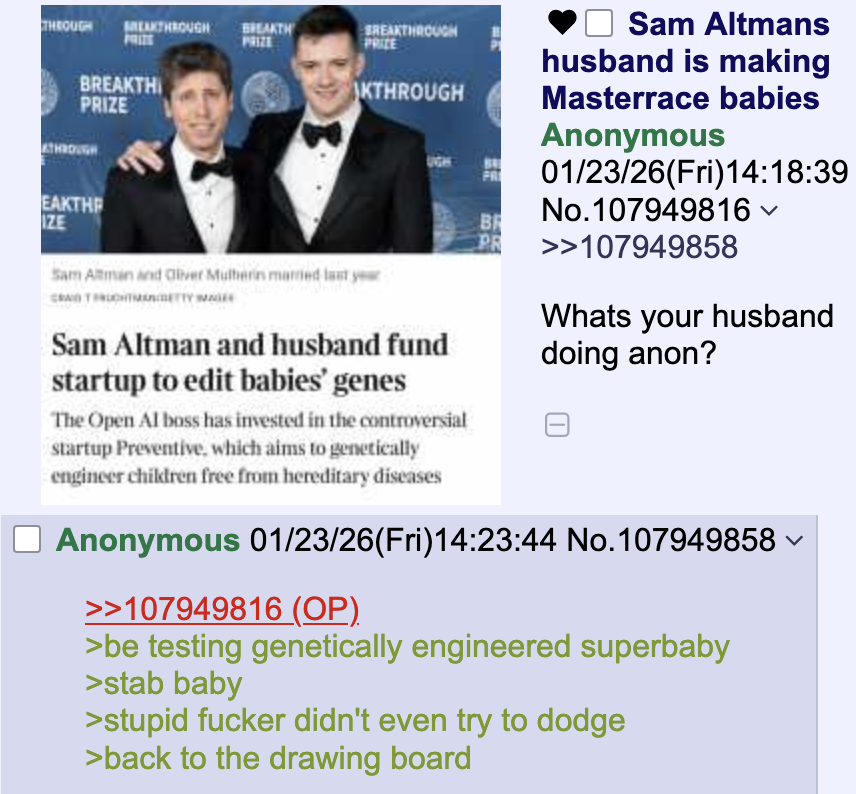 a greentext. this is a place where people post screenshots from 4chan where at least one line of text is green